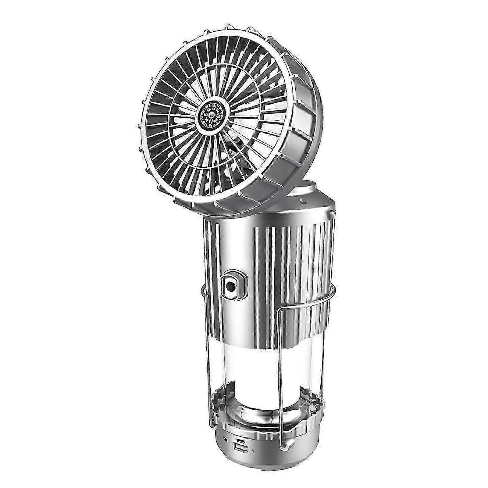 4 in 1 Solar Camping Lanterns With Fan and Speaker, Collapsible USB Charging Lantern, Indoor Outdoor Use, Silver 28cm