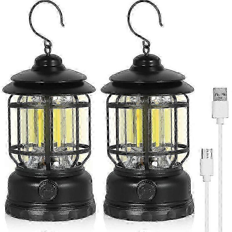 Solar Lantern 2 Pack Rechargeable Camping Lantern, Dimmable, Portable Camping Lanterns, Waterproof, Lightweight for Yard, Hiking, Emergency