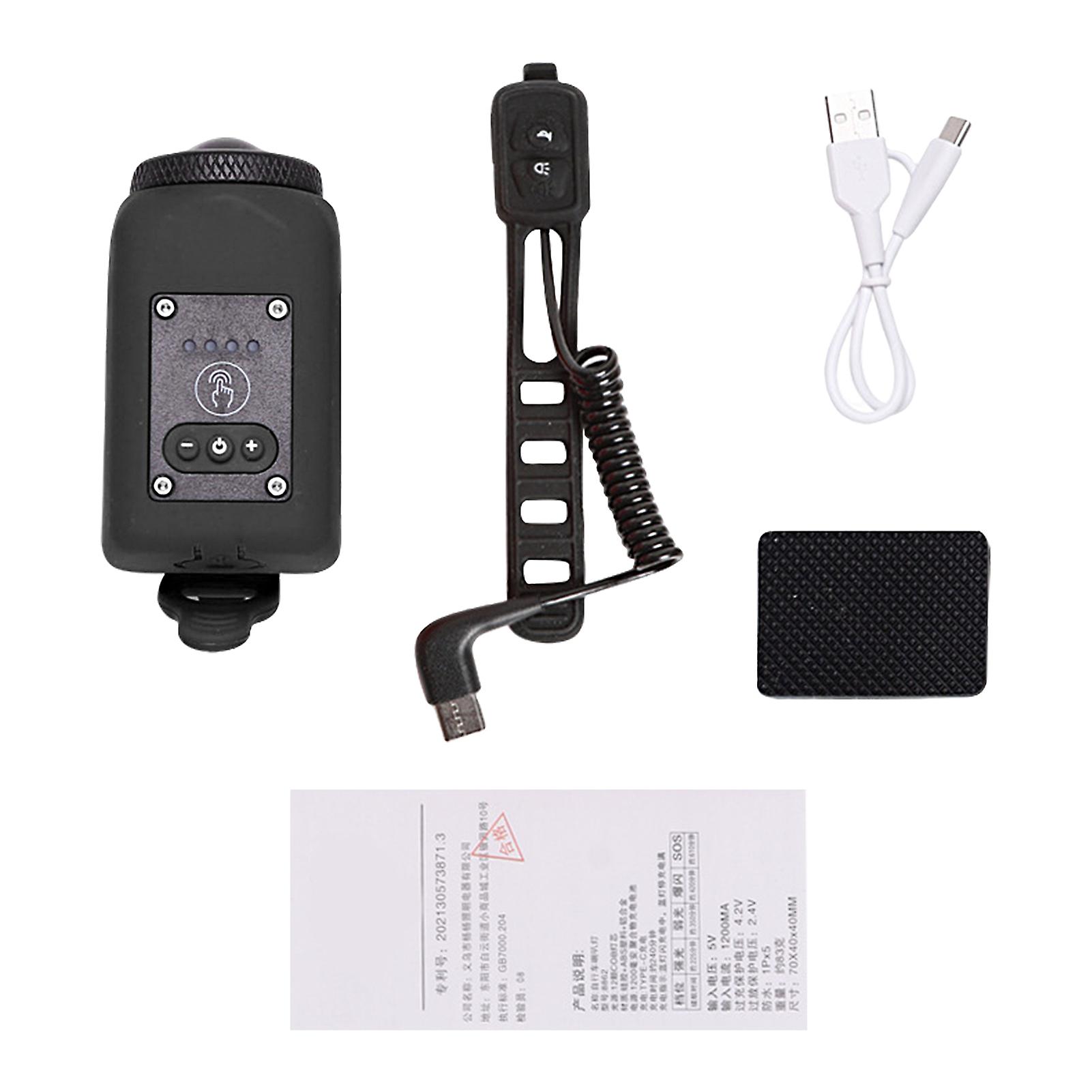 With the 2-in-1 design of bike light and horn, this bike light is extremely practical. Waterproof design makes it not easy to damage by rain so as to has a long service life. Since it is designed with 4 modes, it allows you to switch as needed. Featuring high brightness LED lamp bead design, it ensures excellent lighting effect. It is made of good aluminum alloy, ABS, silicone material. The length of this product is 7cm, the width is 4cm and the height is 4cm. It is suitable for outdoor riding. Item Name: Bicycle Light Material: Aluminum Alloy, ABS, Silicone Light Beads: 12 COB Wicks Speaker Volume: Approx. 120dB Bead Lumen: Up To 250 Lumens Remote Control: Split Remote Control Battery Capacity: 1200mAh (Battery Included) Waterproof Rating: IPX5 Endurance: Approx. 4 Hours In Strong Light Mode Light Mode: Strong Light/Low Light/Flashing/SOS Features: High Brightness, Touch Screen, USB Charging Size Details: 7cm x 4cm x 4cm/2.76" x 1.57" x 1.57" (Approx.) Notes: Due to the light and screen setting difference, the item's color may be slightly different from the pictures. Please allow slight dimension difference due to different manual measurement. Package Includes: 1 x Bicycle Light 1 x External Wiring Control 1 x Charging Cable 1 x Anti-skid Spacer 1 x User Manual