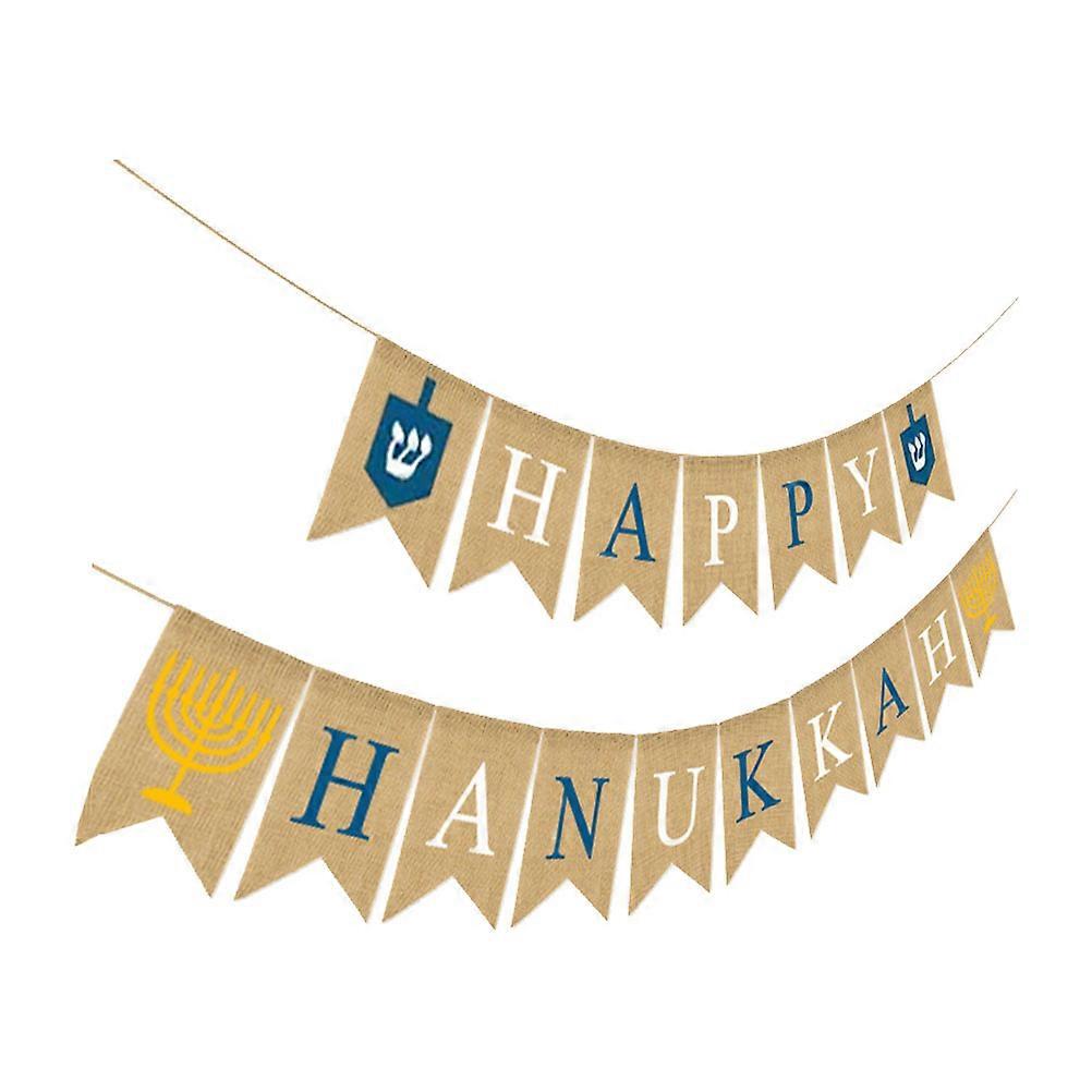 Festival Banner Hanging Decor Hanukkah Scene Decor Assorted Color 18x13cm Linen Cloth Festive Atmosphere 1Set