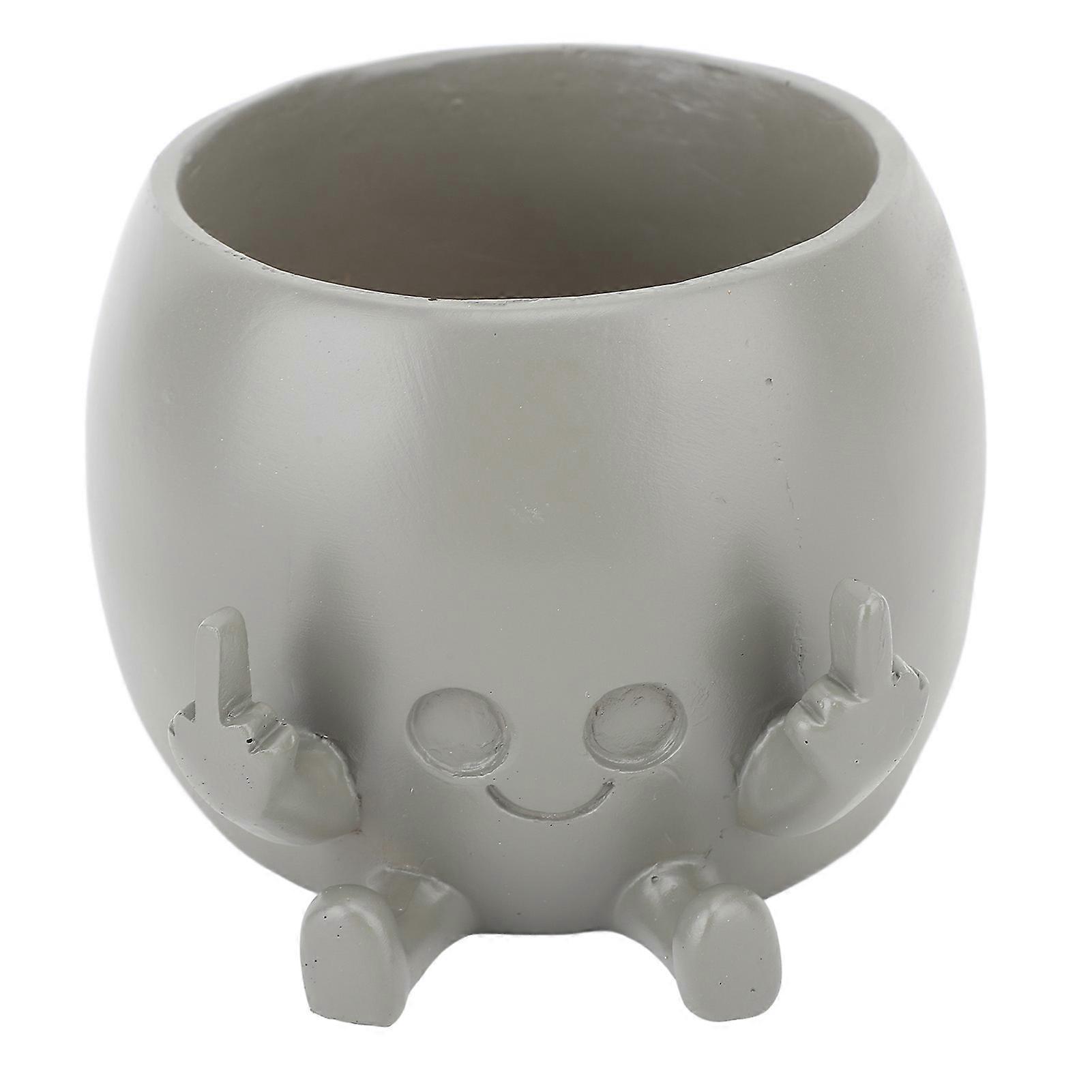 Resin Succulent Plant Pot Figurine with Middle Finger Up, Funny Decorative Planter for Bedroom Office Patio Gray