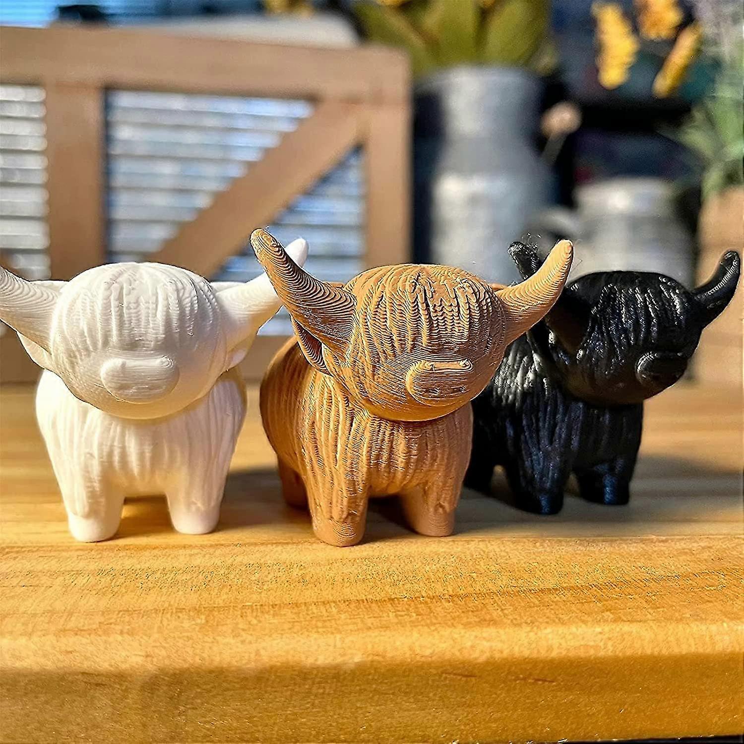 Cute Highlands Cow Figurine, Handmade Cow Ornament Decorations Highlands Cow Mini Statue Housewarming Decor Gifts-Yvan