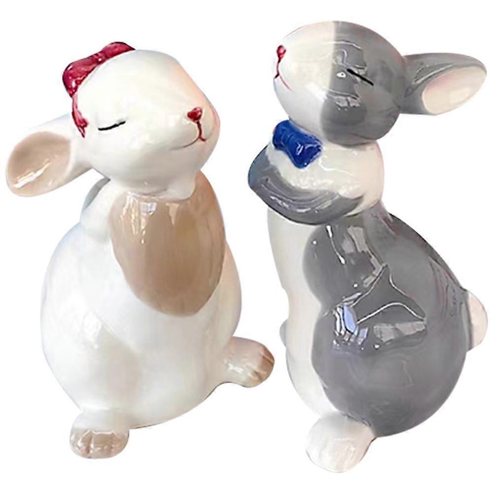 Cute Ceramic Bunny Figurines 3 Pairs Tabletop Animal Decor For Home Office 6Pcs
