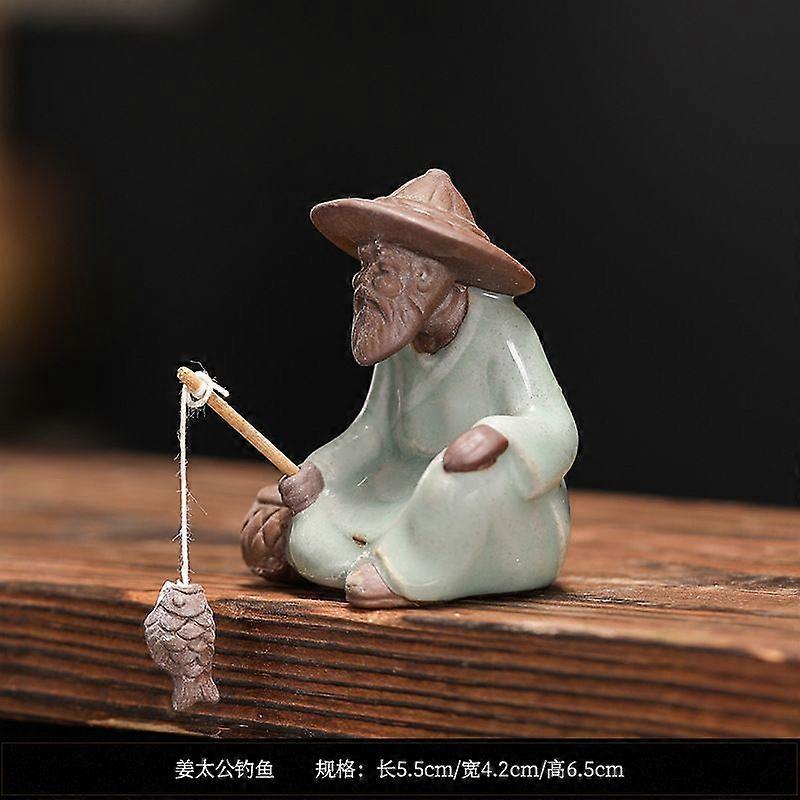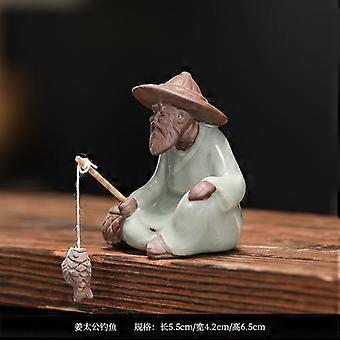 Mini Fisherman Figurines: Ceramic Chinese Garden Statues - Old Man Fishing Sculpture for Bonsai Displays Aquariums & Zen Landscapes - Patio Ornament