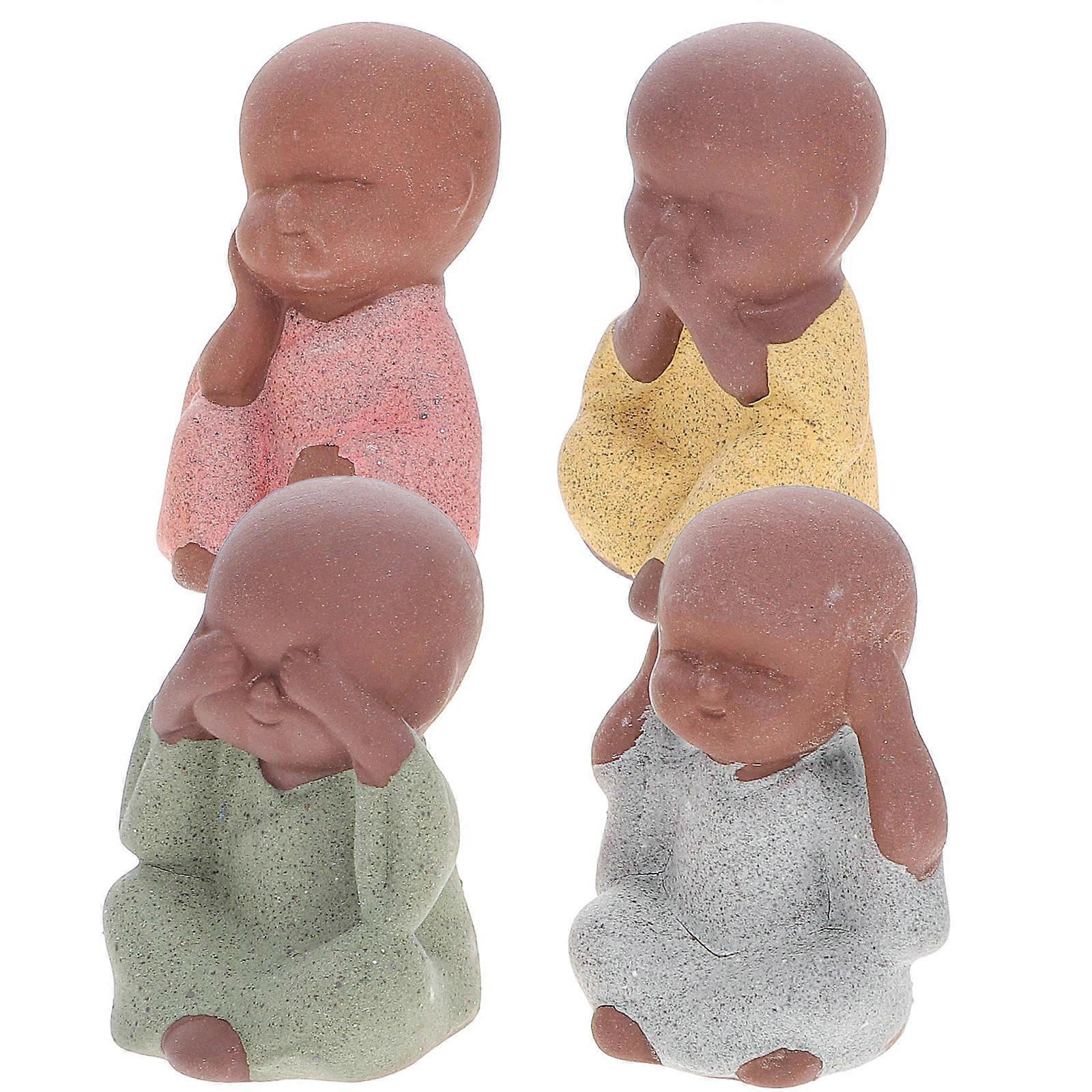 Ceramic Figurines Decorative Monks Tea Ceremony Pet Adornment Study Car Accessories Green 4Pcs