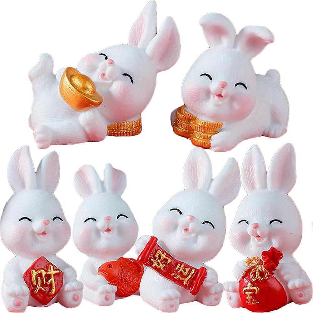 Tiny Rabbit Statues For Home Decoration Cartoon Bunny Appearance 6Pcs