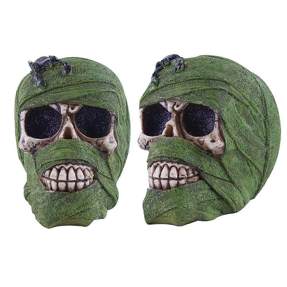 Halloween Skull Statues 2Pcs Green Resin Desktop Figurine Eerie Decoration For Bars And Nightclubs 14x9.5x12cm