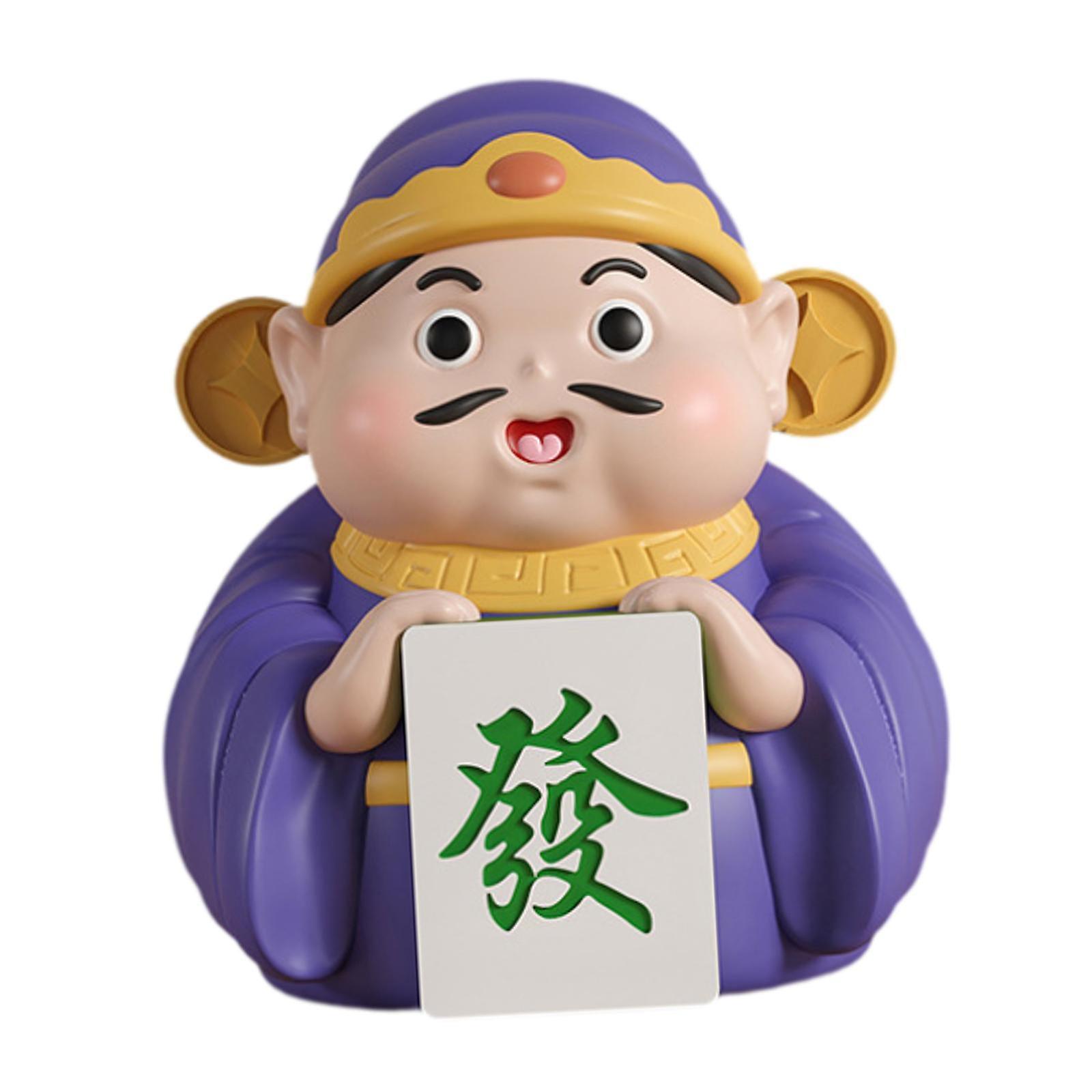 God of Wealth Sculpture Cute Gifts Small Caishen Statue for Bedroom Desk Home Purple