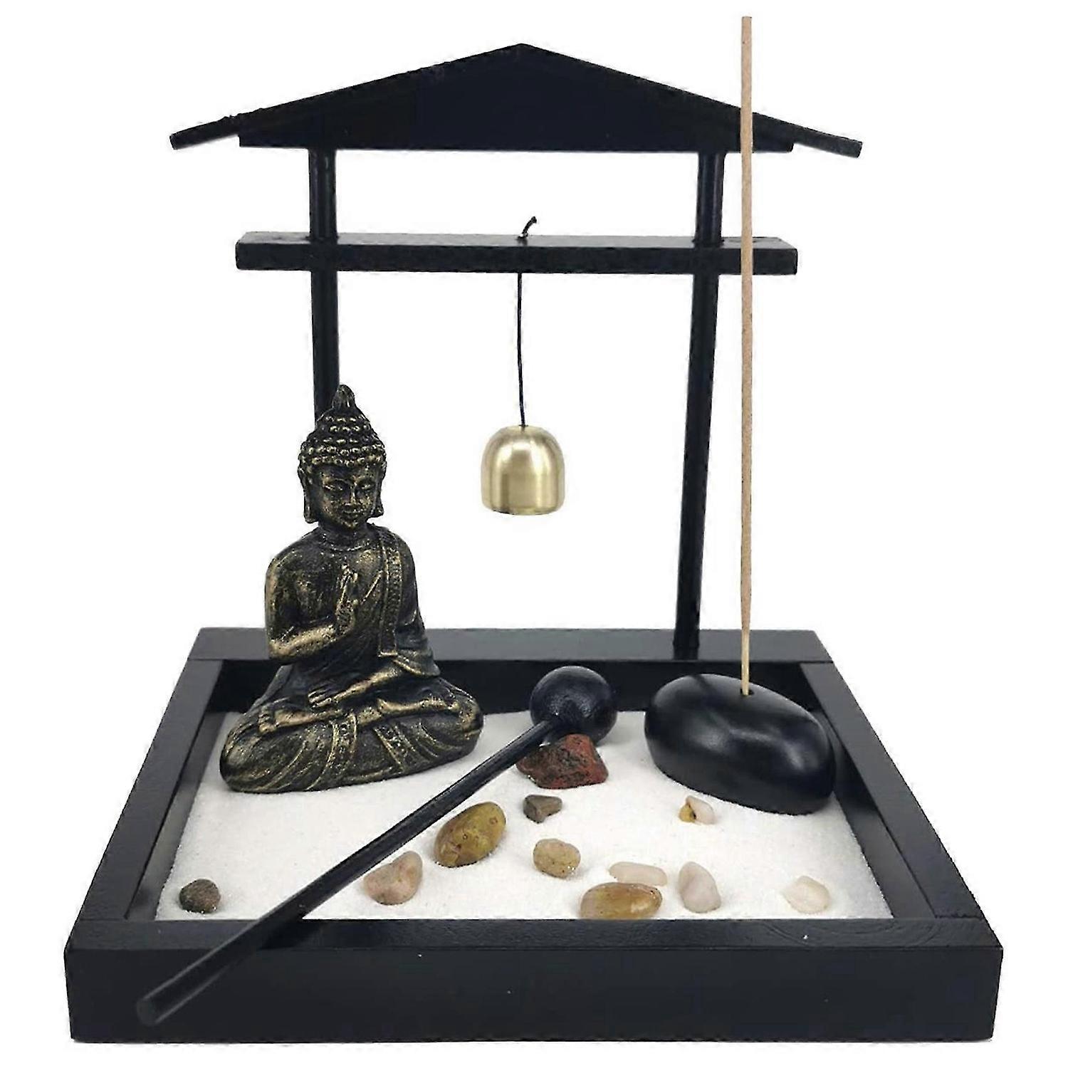 Desktop Zen Sand Garden Meditating Buddha Statue,Mini Zen Garden Sand Tray Kit for Home Office Decor