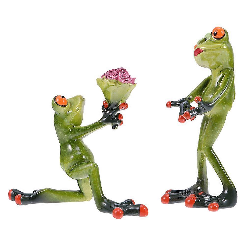 Miniature Frog Garden Statue Resin Frog Shape Decor Home Ornament Green 15x7.5cm 2Pcs