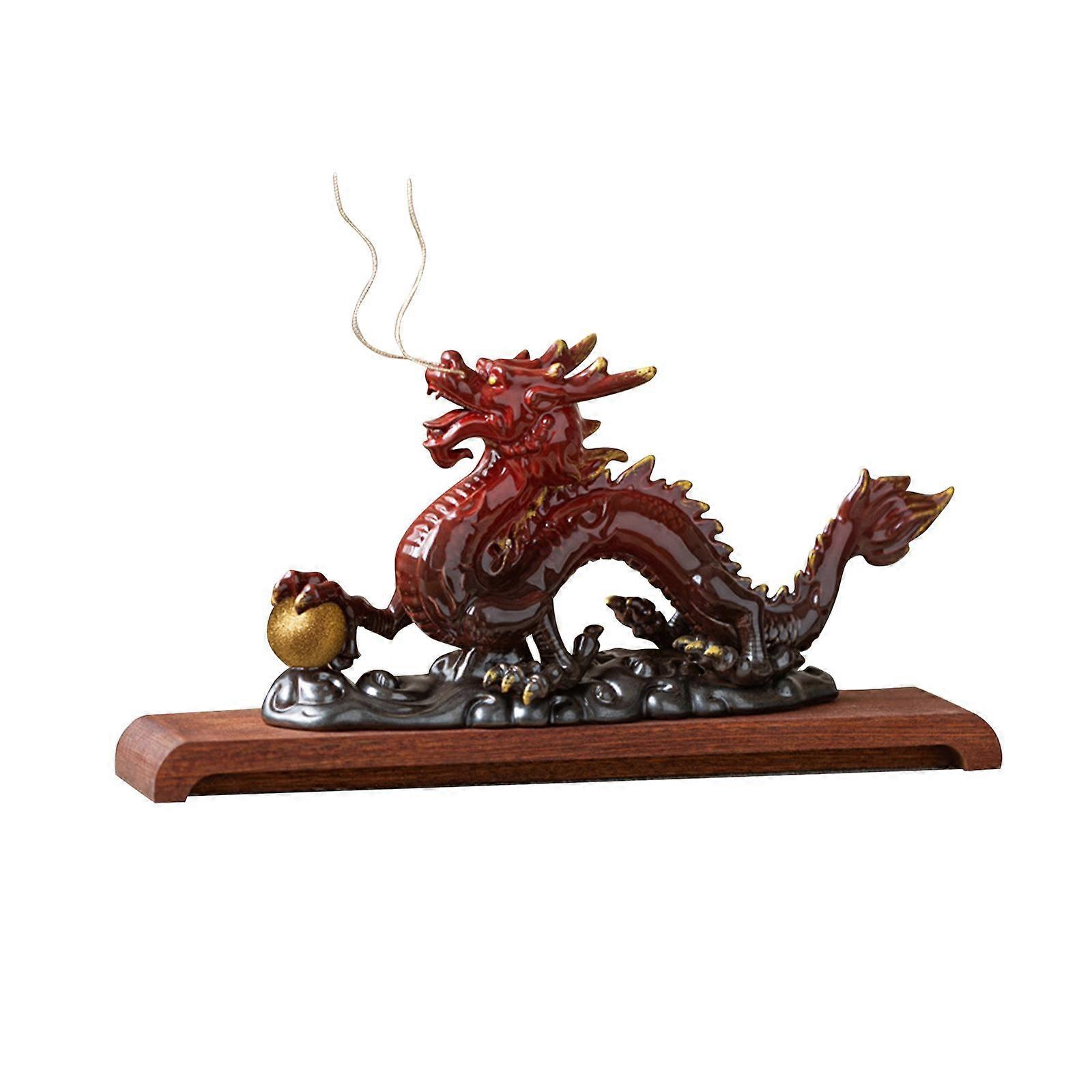 Feng Shui Dragon Statue Ceramic Tabletop Decoration for Office Bedroom Shelf Red