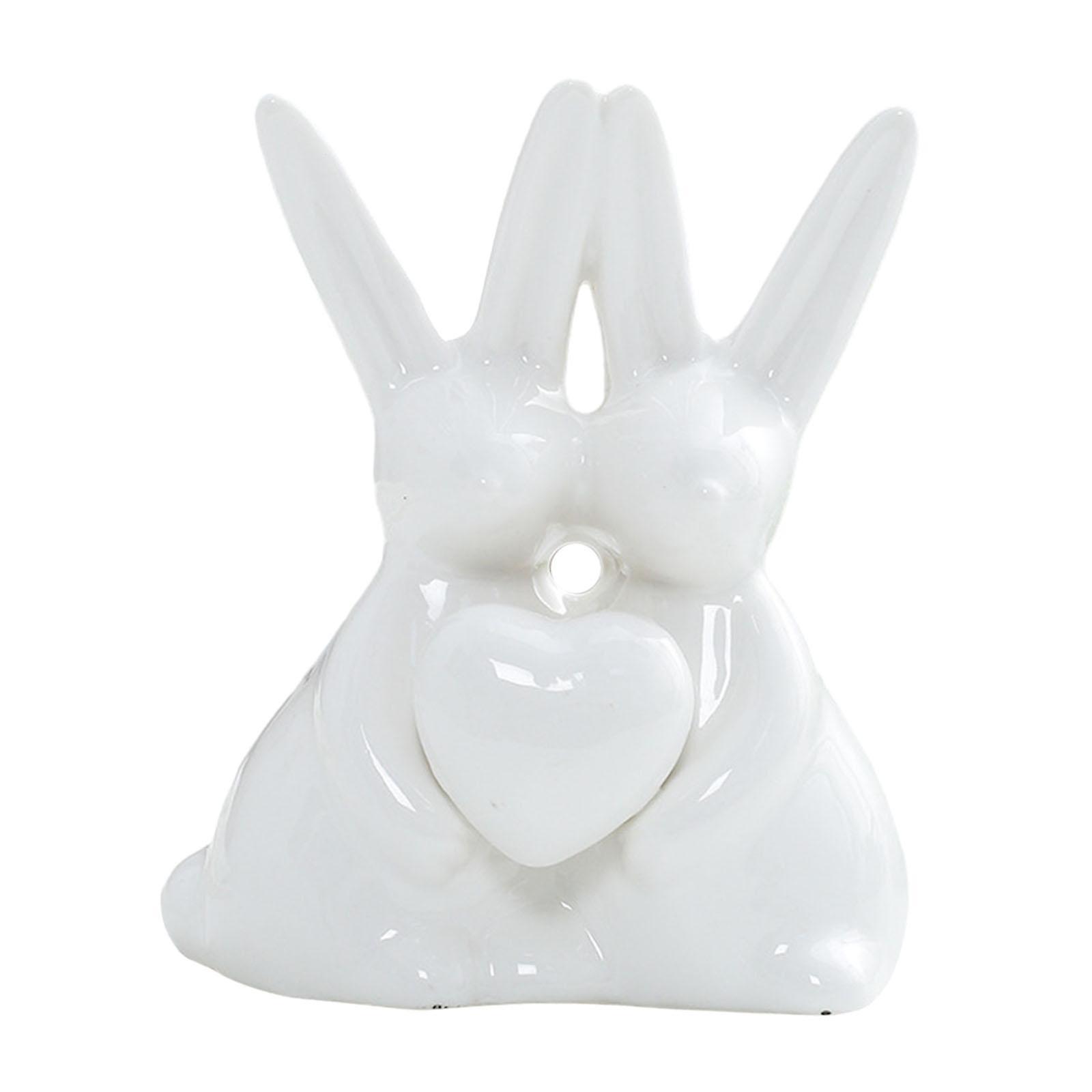 Rabbit Couple Statue Ceramic Animal Sculpture Party Gift Home Bunny Figurine White