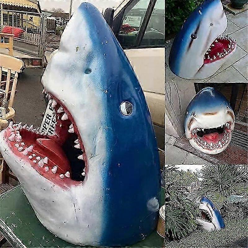 Great White Shark Statue 3D Crocodile Jaws Head Sculpture Garden Art Resin Decoration 2025