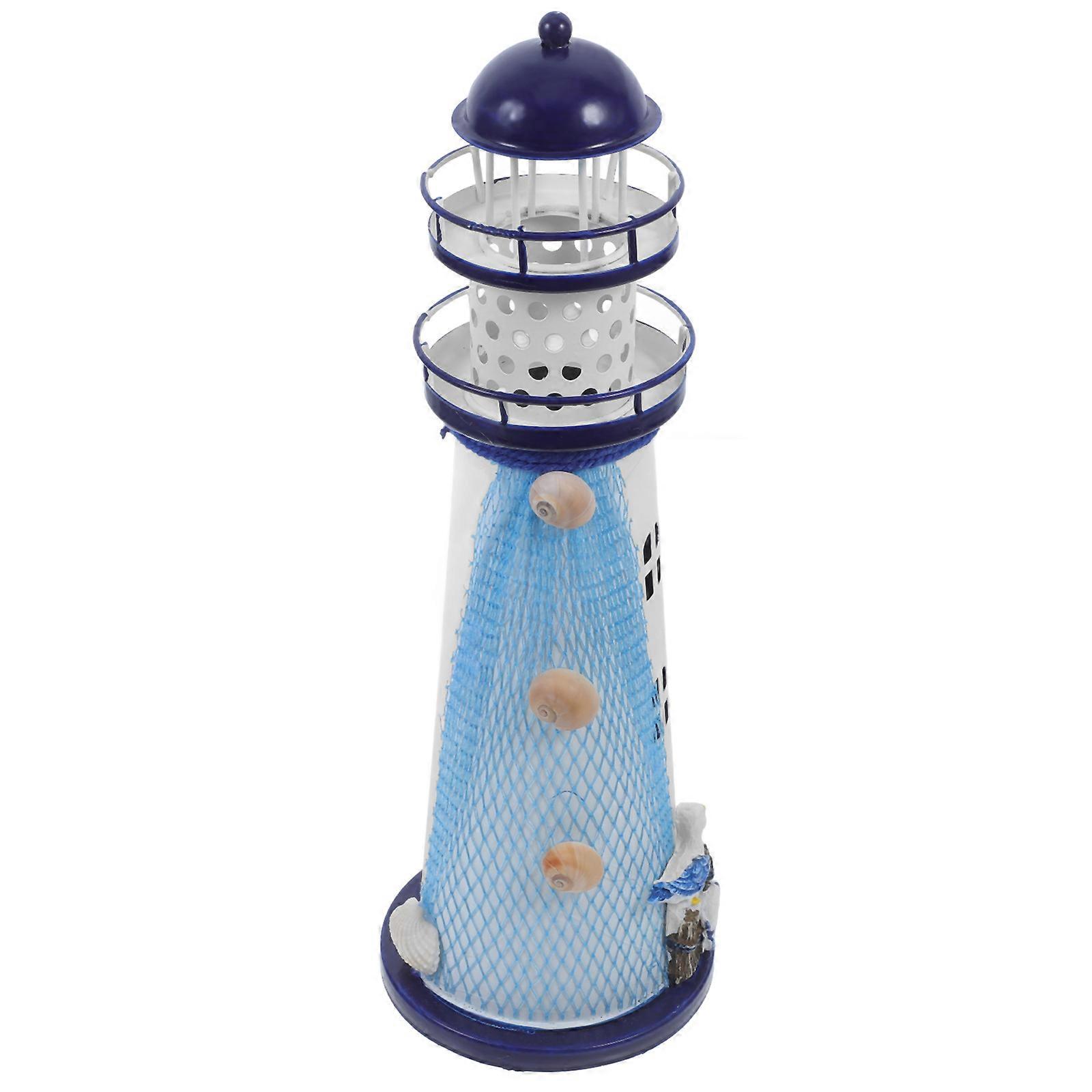 Lighthouse Statue Iron Craft Mediterranean Style Home Decoration 30cm Large Size 1Set