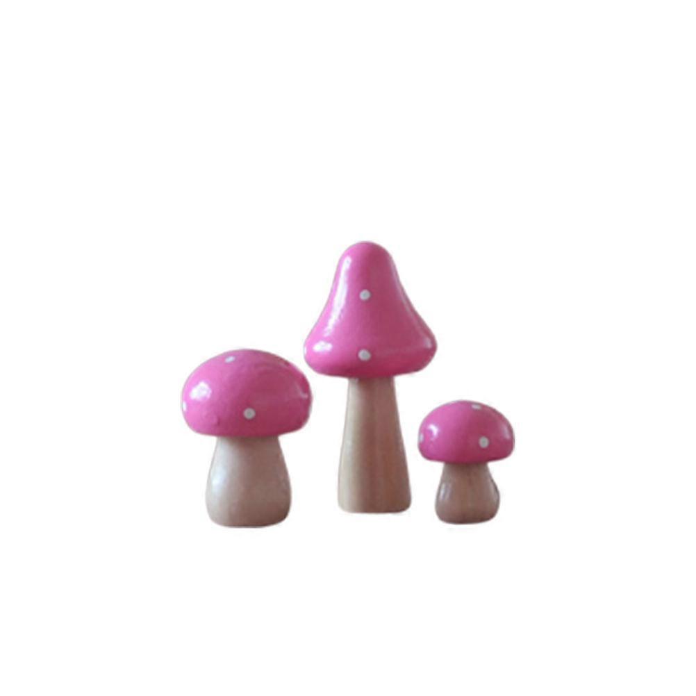 Wooden Mushroom Sculpture for Miniature Landscape 9Pcs Pink Decoration