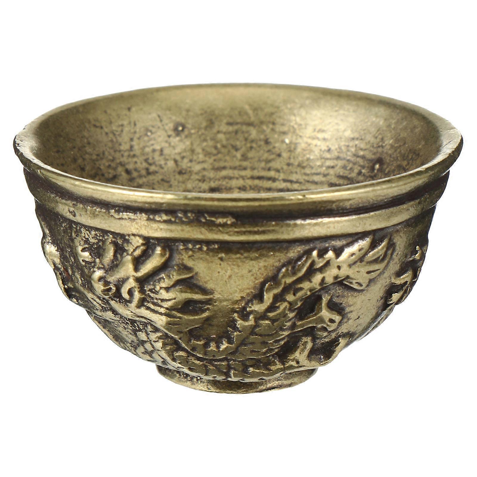 Brass Statue Sculpture Mini Bowl Antique Carved Ornament Home Decoration 3X3X1.5CM 1Pack