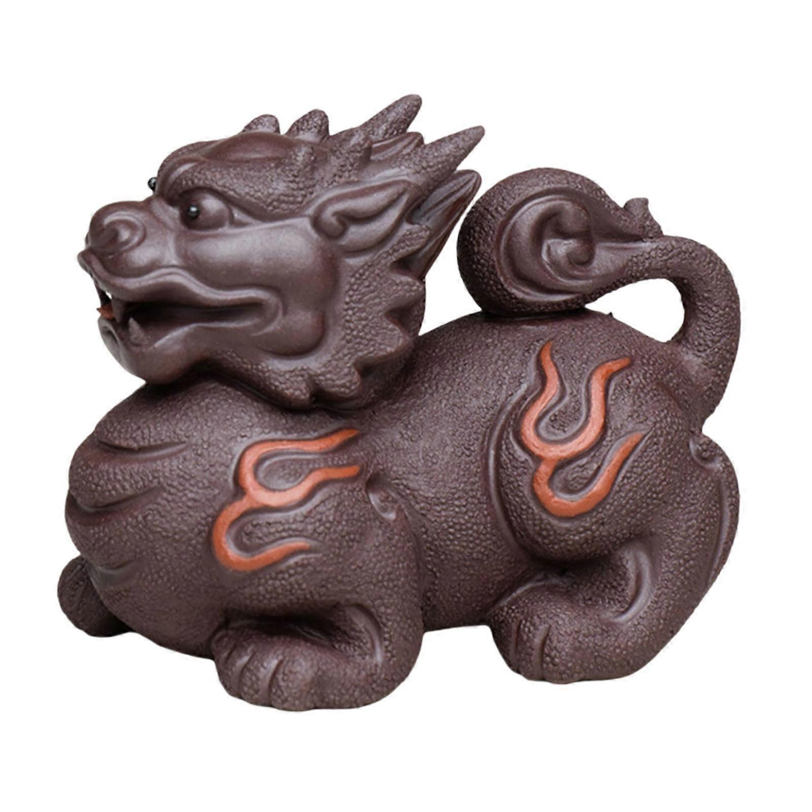 Kirin Statue Miniature Figurine Living Room Office Purple Clay Tea Pet Qilin