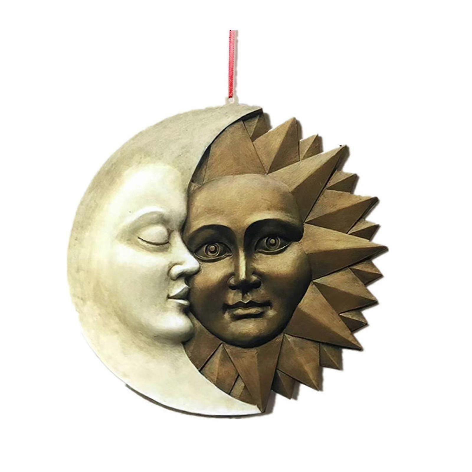 Moon Sun Statue Pendant Art Figurines Outdoor Ornament Home Living Room Wall Decor