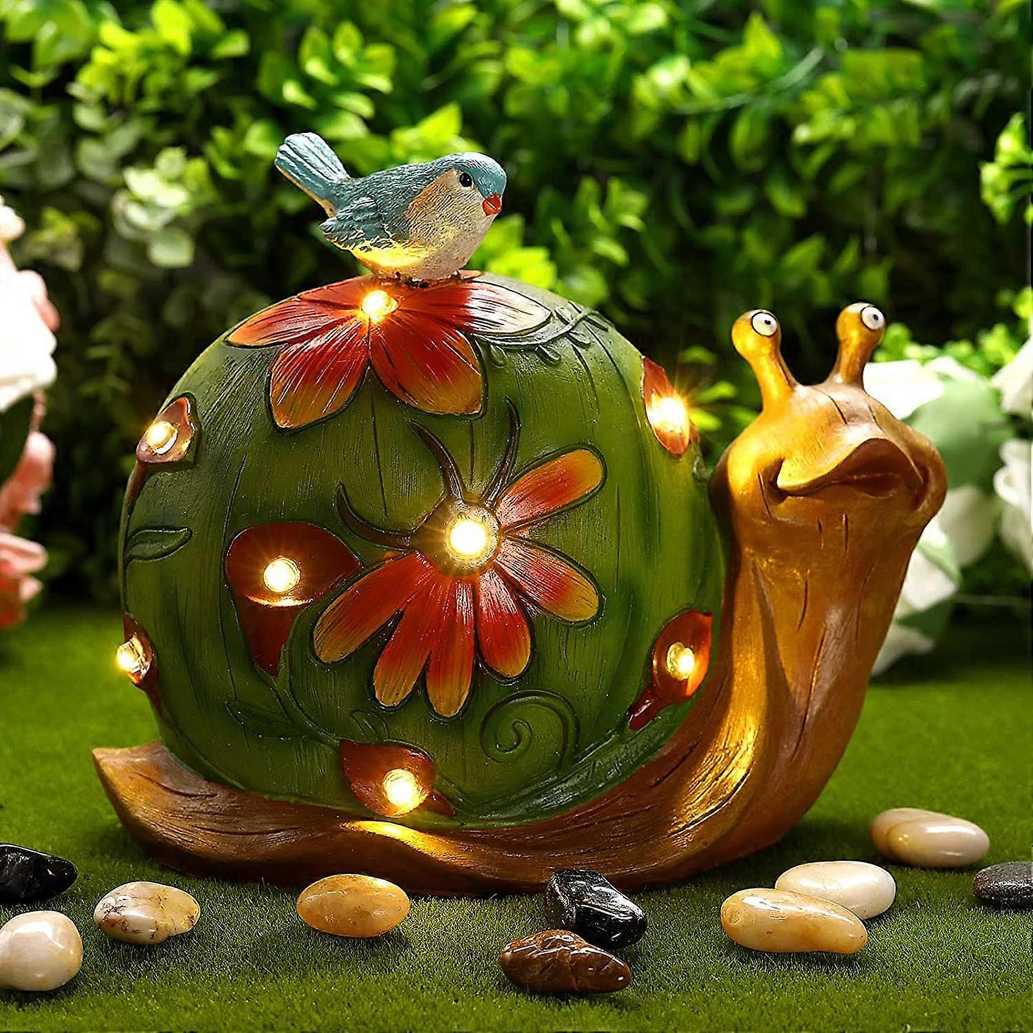 Garden Resin Statue with Led Lights Outdoor Waterproof Figurine Decor