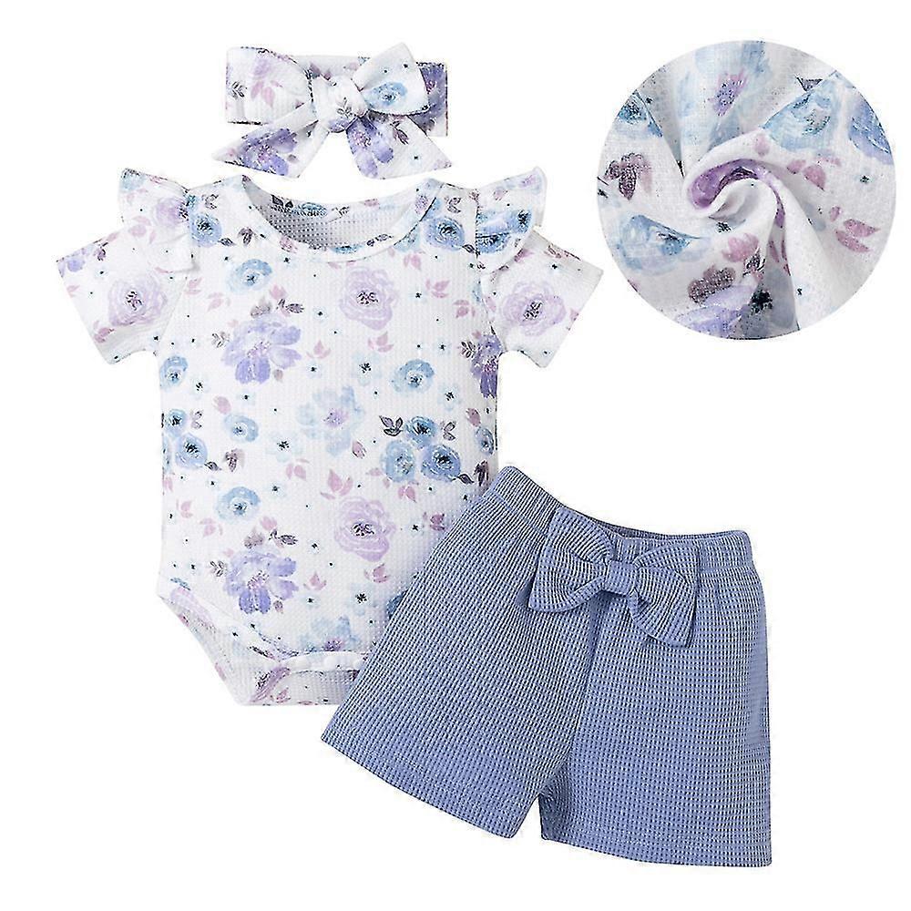 Newborn Toddler Girls Floral Romper Top Shorts Bow Headband Set Summer Outfits