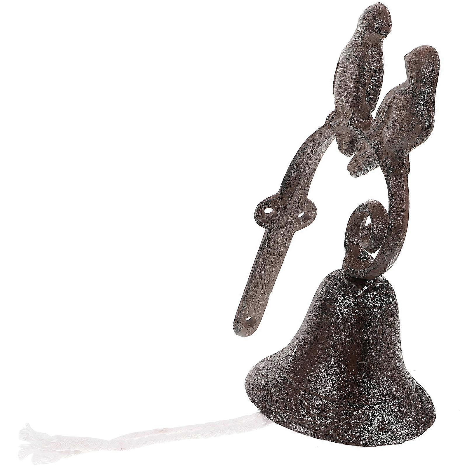 Rustic Vintage Cast Iron Doorbell with Bird Ornament, Handmade Decorative Wall Hanging Bell for Garden or Front Door, Antique Style