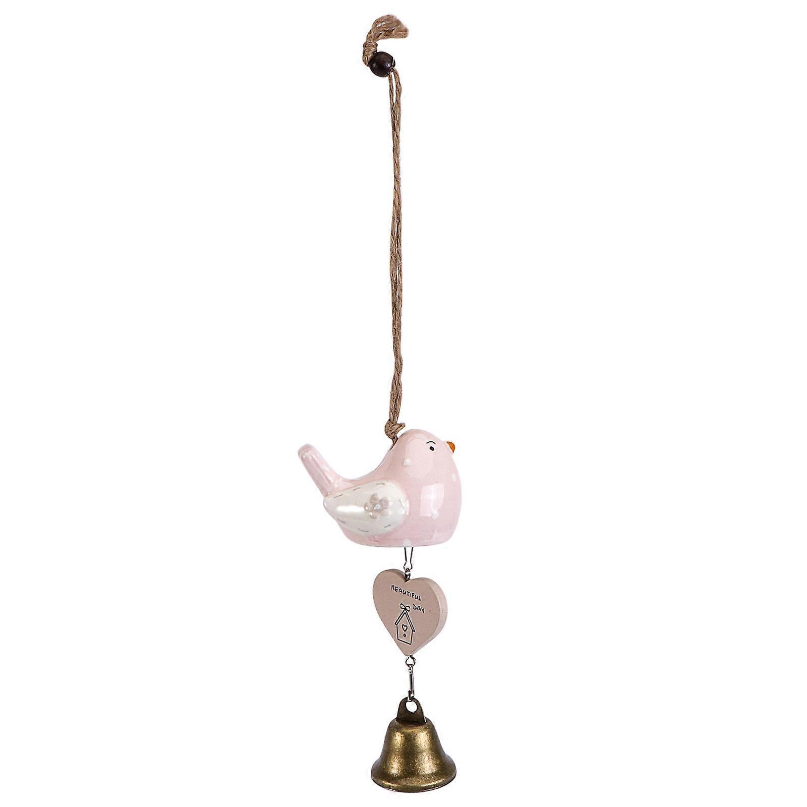Creative Pink Bird Cage Wind Chime for Door Room Car Garden Decoration Made of Ceramic and Metal