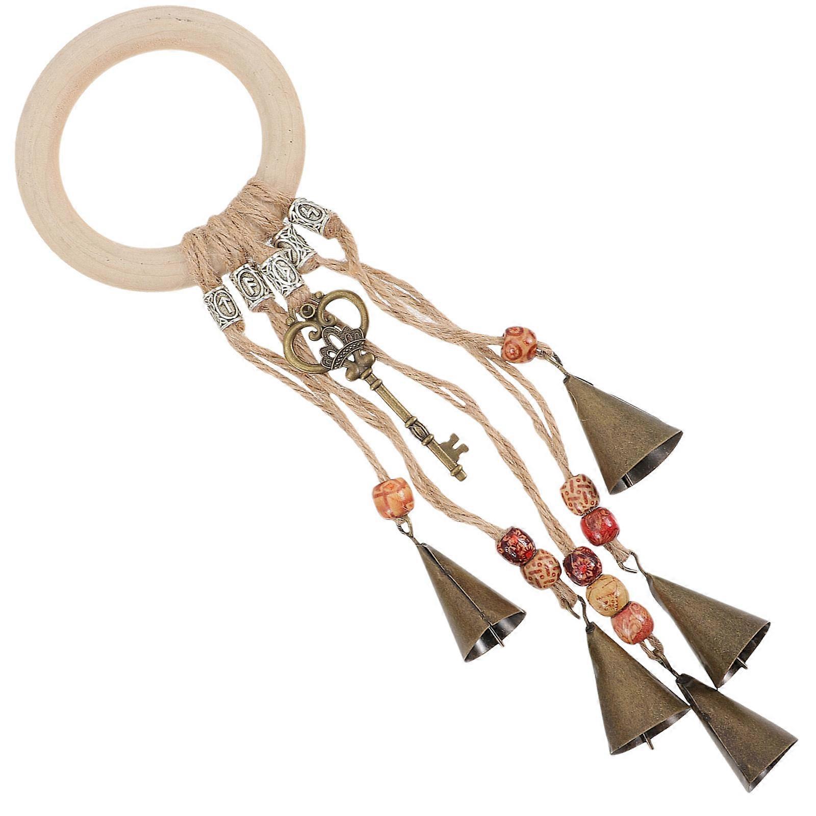 Hanging Bell Decor Iron Wood Rope Good Luck Indoor and Outdoor Decoration Family 1Pcs