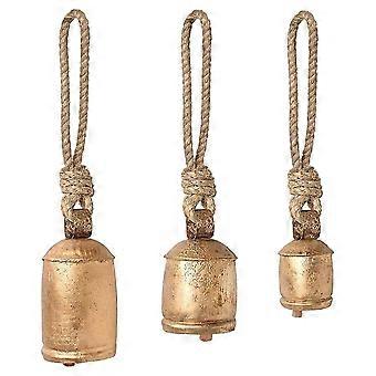 Cast Iron Hanging Cow Bells Set of 3 Hanging Harmony Bells Garden Rustic Relaxing Tranquil Wind Chimes