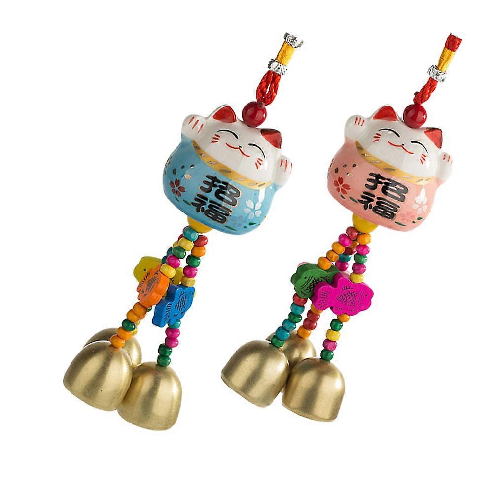 Assorted Color Fortune Cat Wind Chimes Hanging Pendants 4Pcs for Decoration