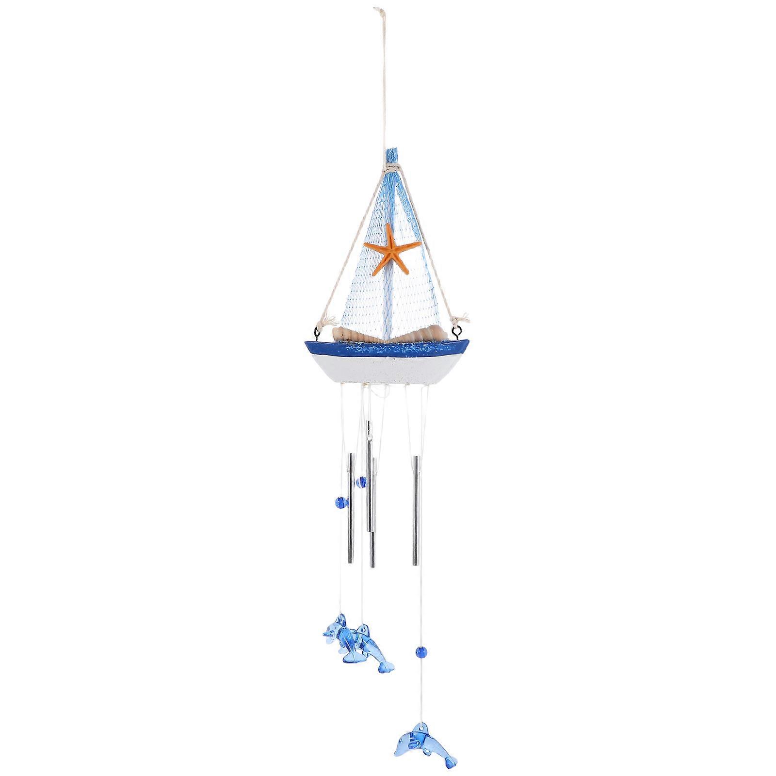 Coastal Beach Sailboat Wind Chime 5Pcs Hanging Ornament For Living Room Bedroom Office Patio Decor Producing Soothing Sound