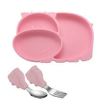 Children's Sucker Silicone Baby Tableware Learning Bowl Sucker Tableware Set (Pink)