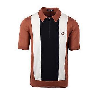Fred Perry Vertical Stripe Zip Neck Polo Cinnamon/navy/ecru