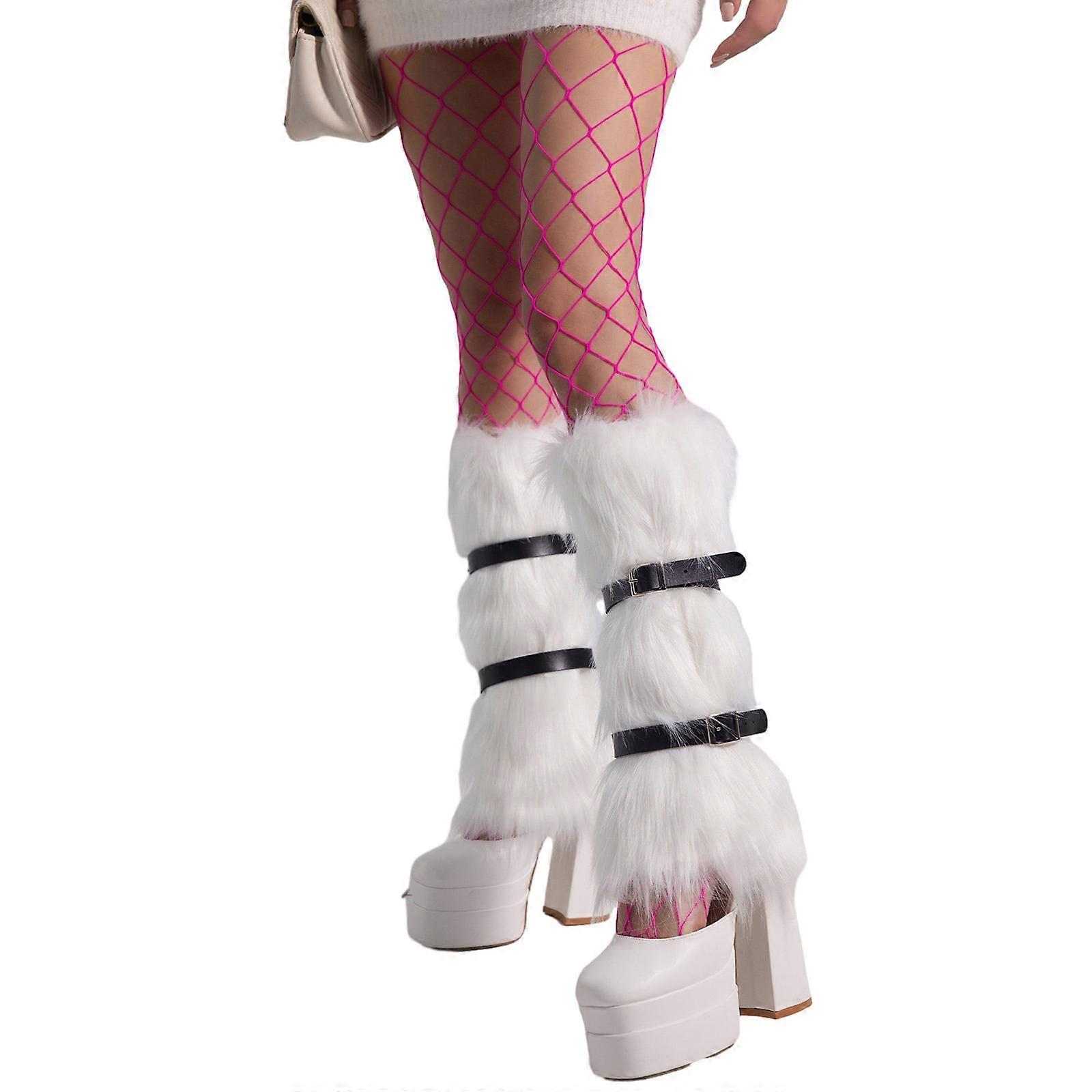 Furs Leg Warmer Furry Boot Cuffs Fuzzy Shoe Cover Fishnet Tights Party Costume for Holiday Festival Performances Play White