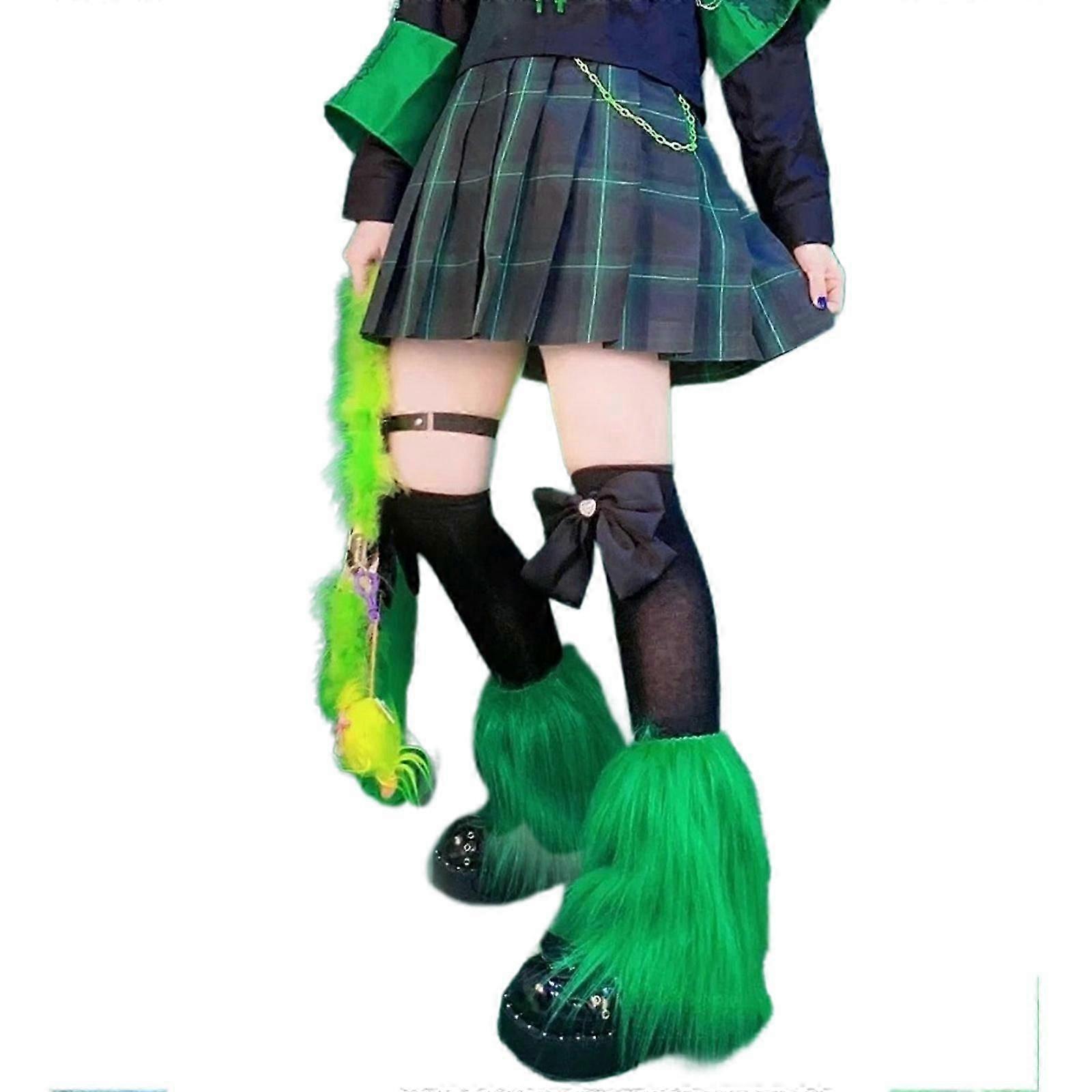 Faux Furs Leg Warmer,Warm Soft Cozy Fuzzy Leg Warmer Boot Cuffs Cover for Women Party Costumes Boot Sleeves Boot Covers Green 20CM