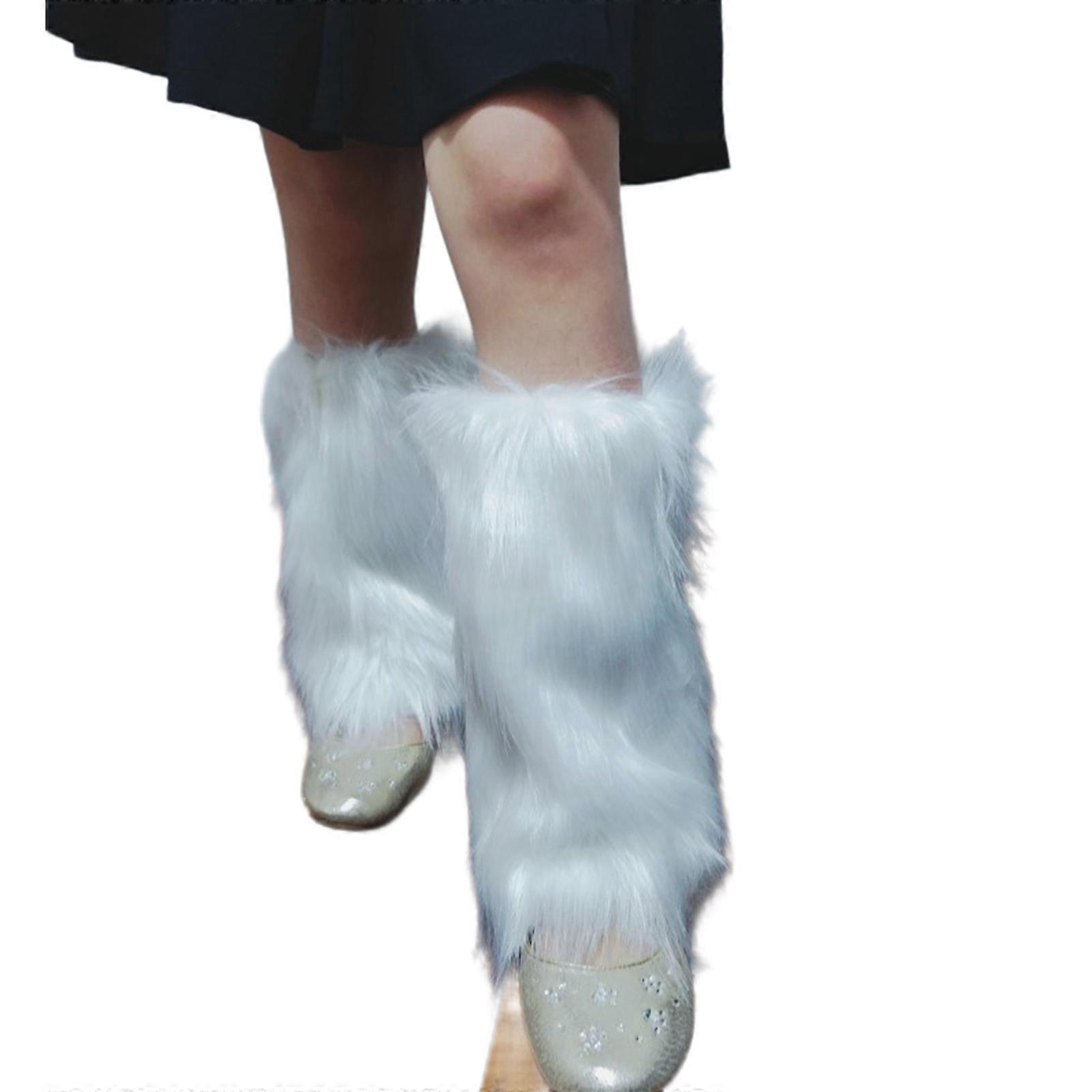 Fuzzy Faux Furs Leg Warmers Furs Heels Long Boots Cuffs Cover Has Elastic One Pair Carnivals Boot Cover Y2K JK Uniform Chinese version 25