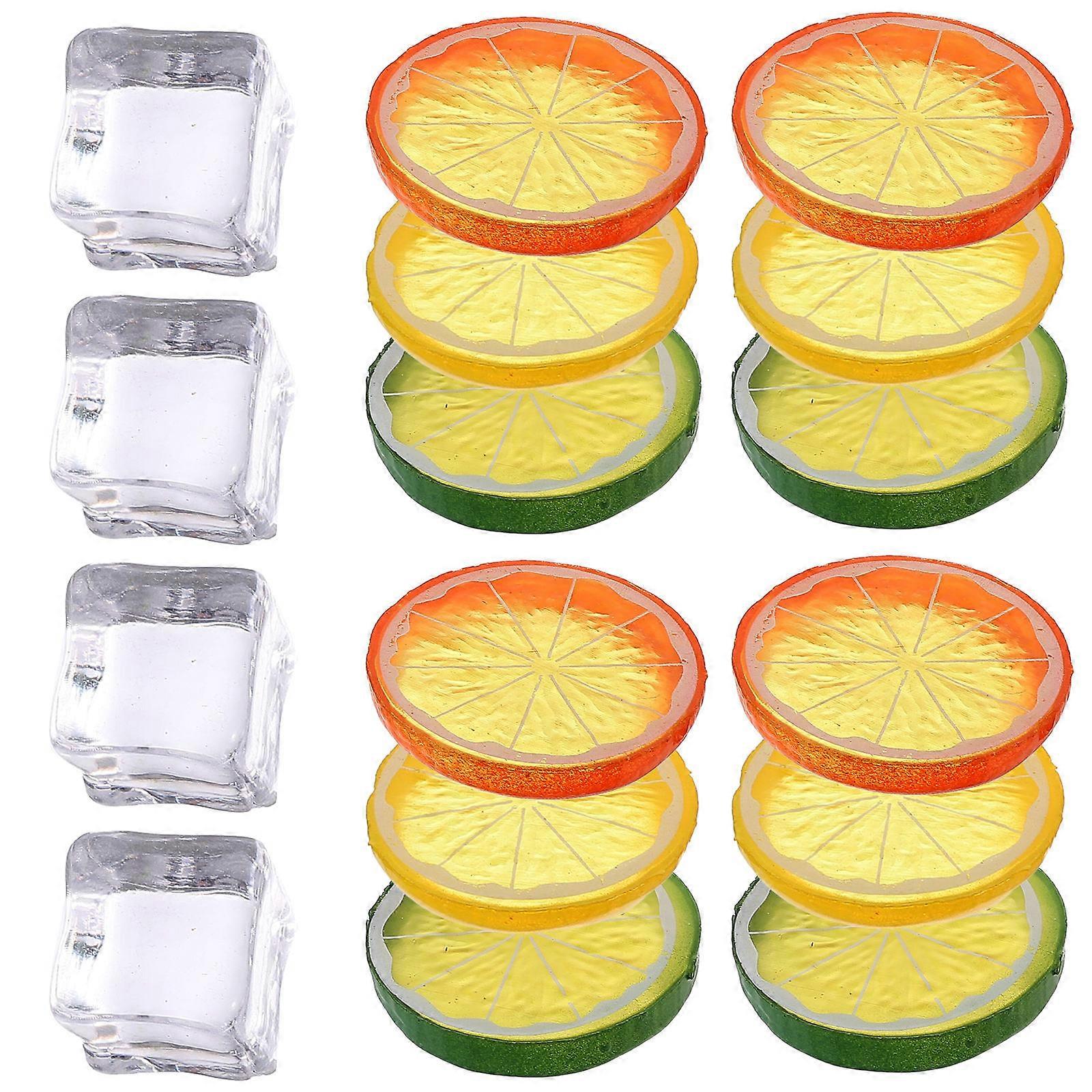 Plastic Lemon Slices and Ice Cubes Realistic Fruit Models for Photography Props, Home Decor, and Teaching Aids