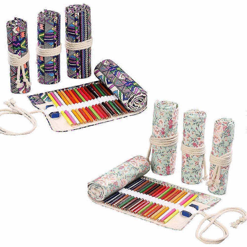 Floral Handmade Canvas Pen Bag Large Capacity Rolling Pencil Holder for Art Supplies Storage Organizer for Students & Artists