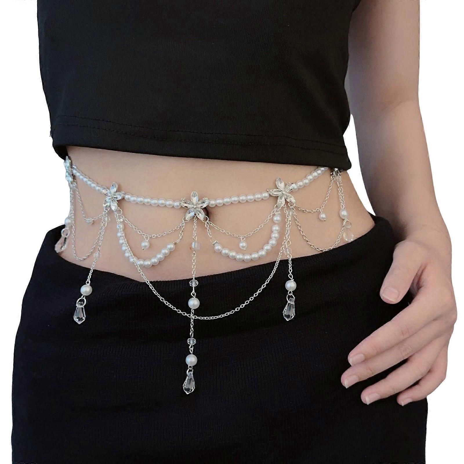 Floral Pearls Waist Chain for Trendsetters and Ladies Female Waist Girdle Decorative Body Chain Daily Party Accessory
