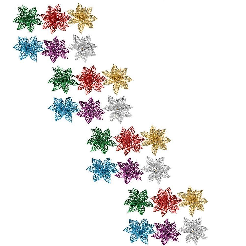 Faux Christmas Flowers Fake Flowers For Home Christmas Decorations Glitter Round Design PVC 7x7CM Fireplace 24Pcs