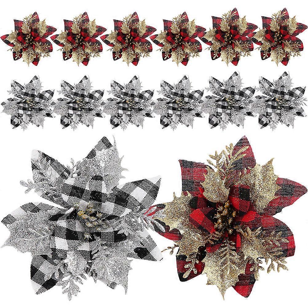 Holiday Flowers Artificial Flowers For Decoration Grey Christmas Tree Hanging Decoration Festive Atmosphere 14x14cm 12Pcs