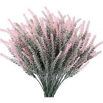 Artificial Lavender Flowers Fake Plants with Fake Plastic Wedding Bouquet for Home Kitchen Decor 8pcs Purple