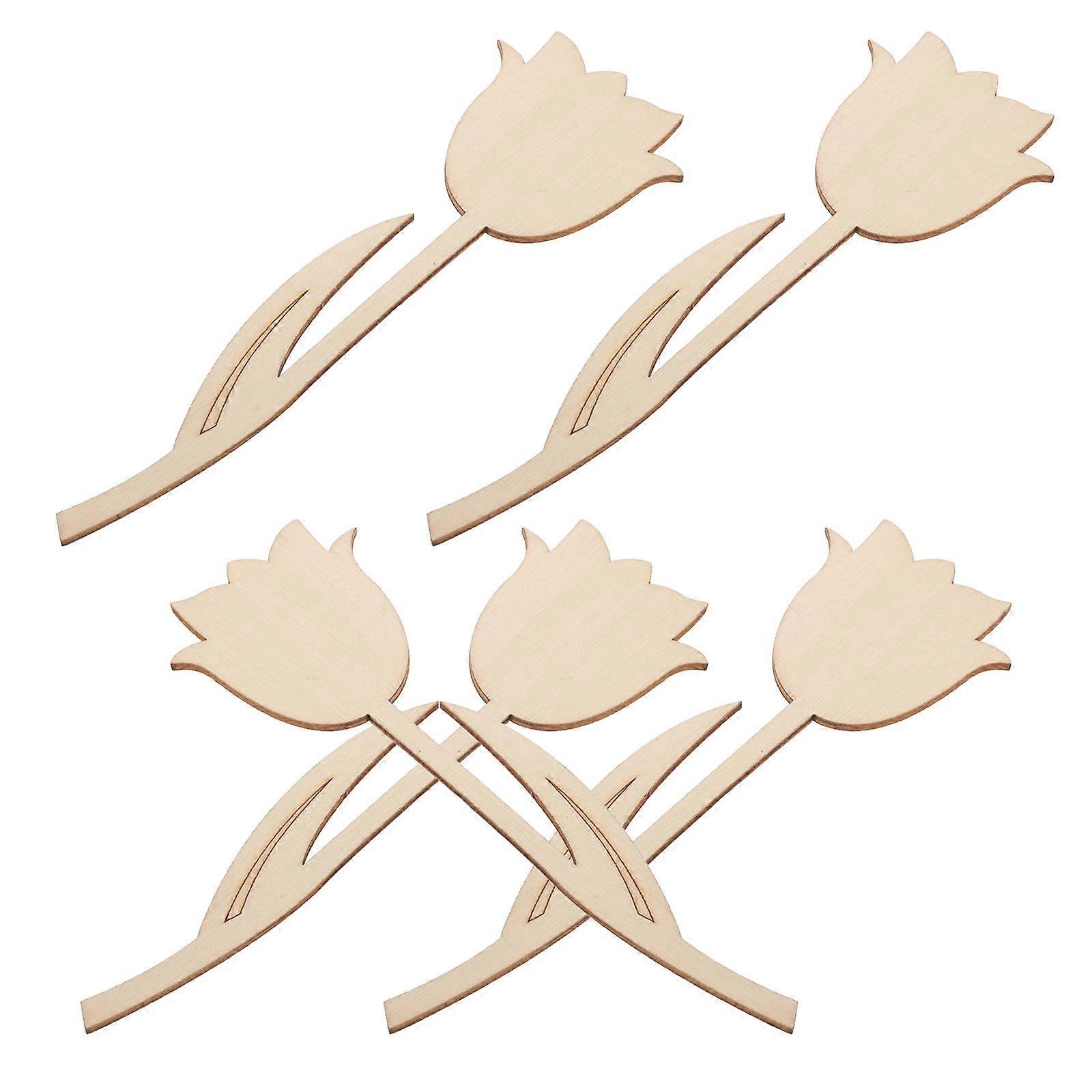 Wooden Flowers Cutouts Blank Slices For Painting Graffiti Home Decor 5Pcs