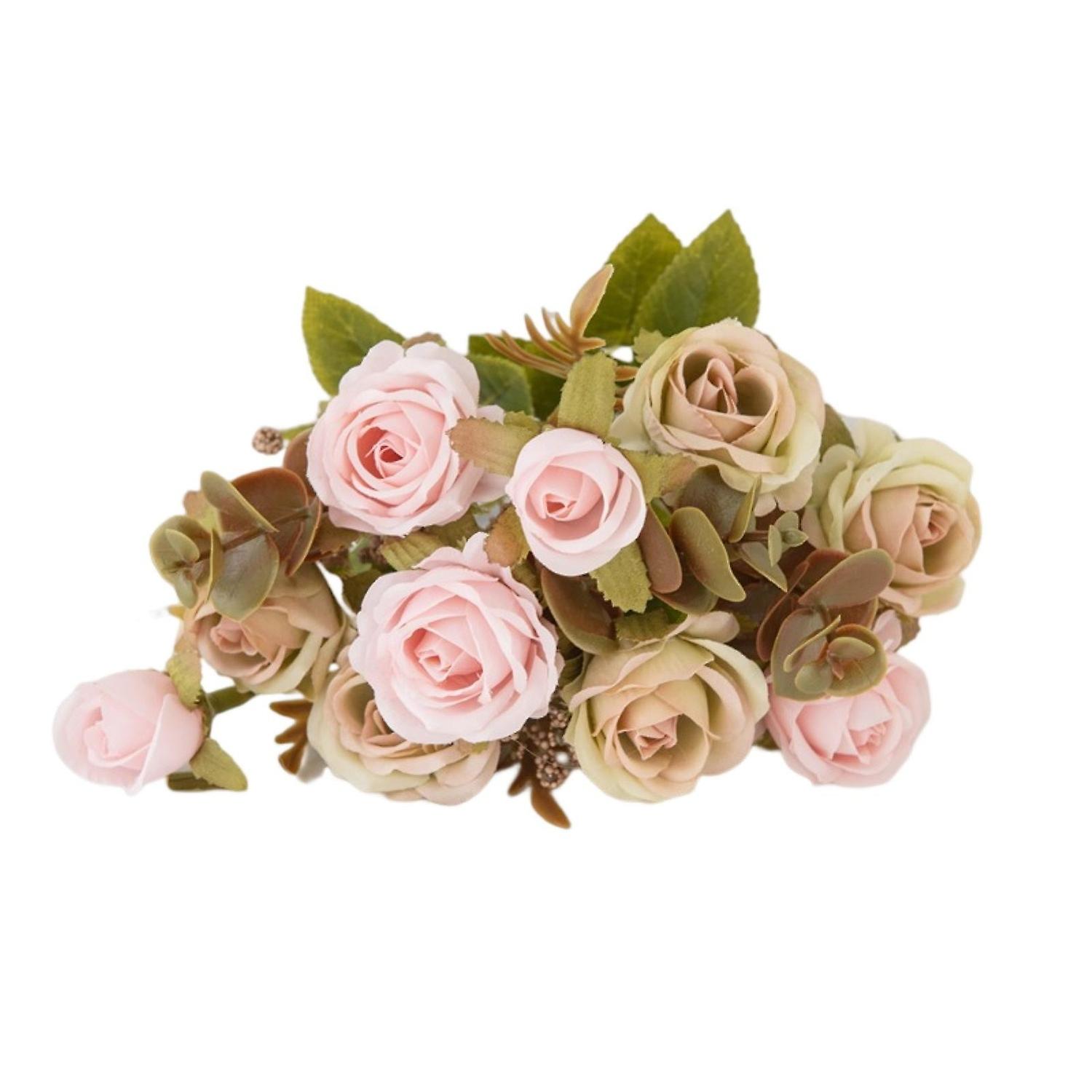 Artificial Rose Flower Eucalyptus Leaves with Stem DIY Dining Table Decor Fake Flower Bouquet