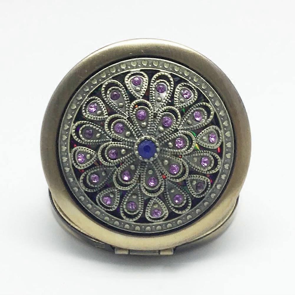Vintage Hollow Flower Mini Folding Pocket Round Double-sided Makeup Mirror Gift QinHai