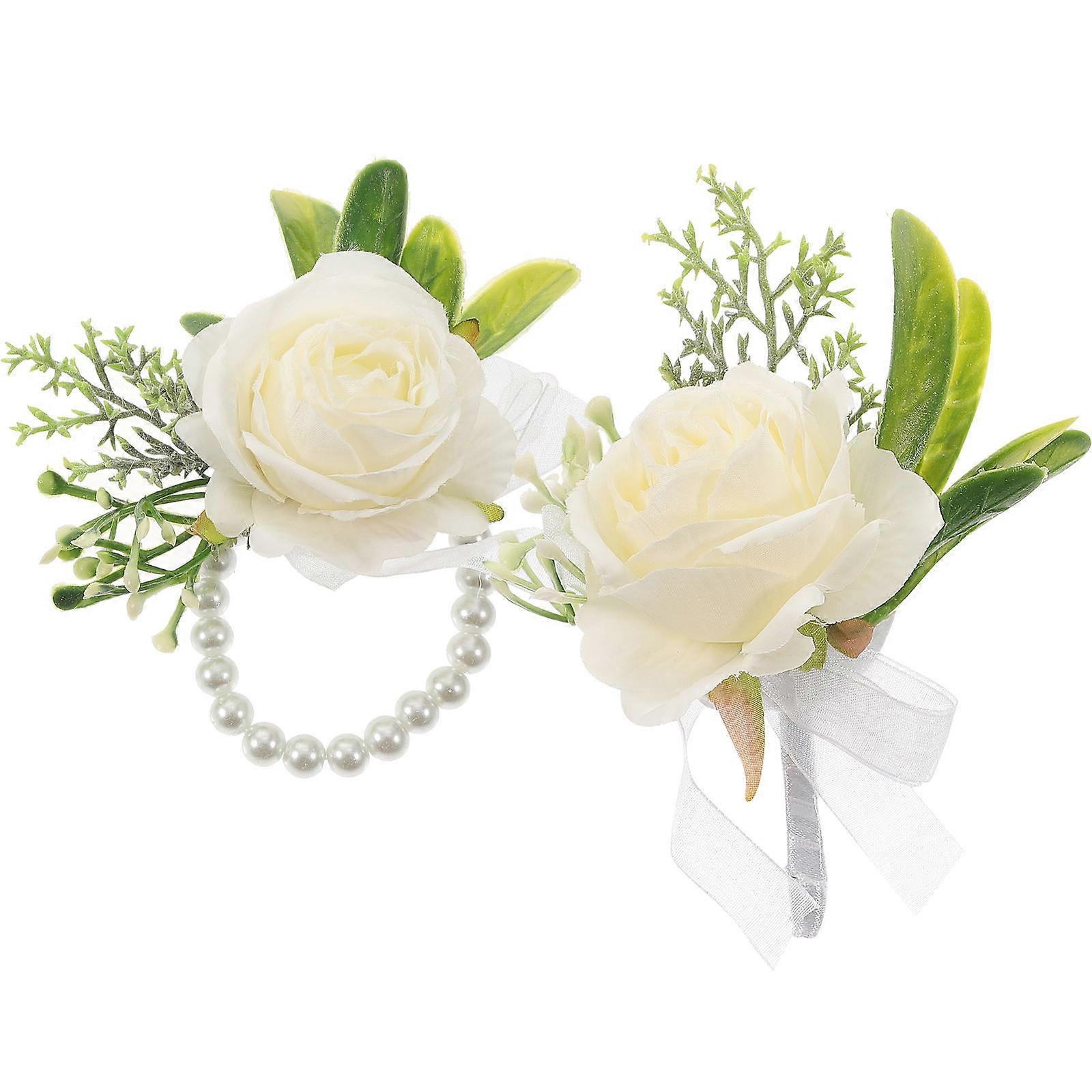 Bridal Wrist Flower Decorative Flower Wristband for Wedding 4Sets
