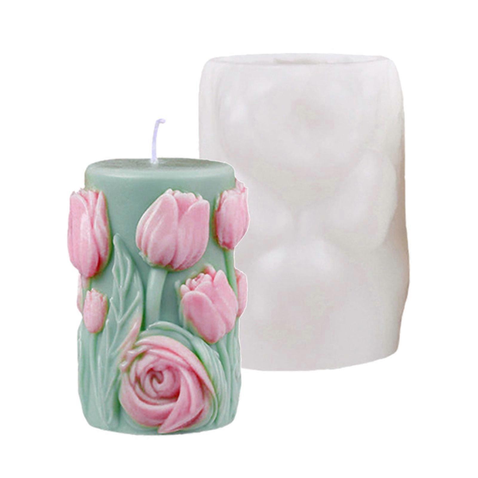Flower Carved Cylinder Silicone Candle Molds Easy Demolding for Epoxy Resin Candle Soap Multipurpose Silicone Mould Multicolor