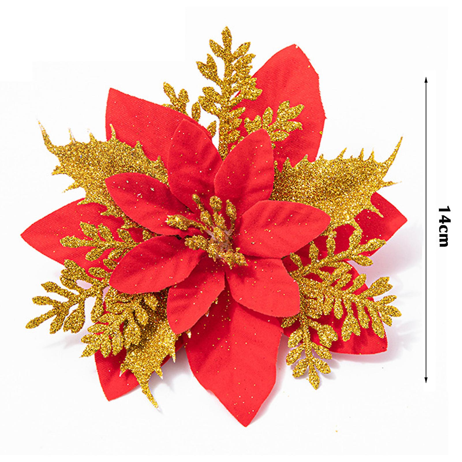 Artificial Christmas Glitter Flower Christmas Vibrant Colors Fake Flowers for Family Friend Neighbor Gift