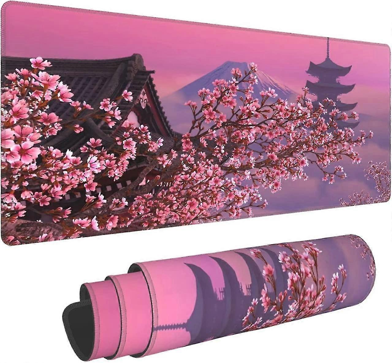 Japanese Sakura Flower Extended Mouse Pad 31.5x11.8 Inch Xl Pink Cherry Blossom Non-slip Rubber Base Large Mousepad With Stitched Edges Waterproof Key
