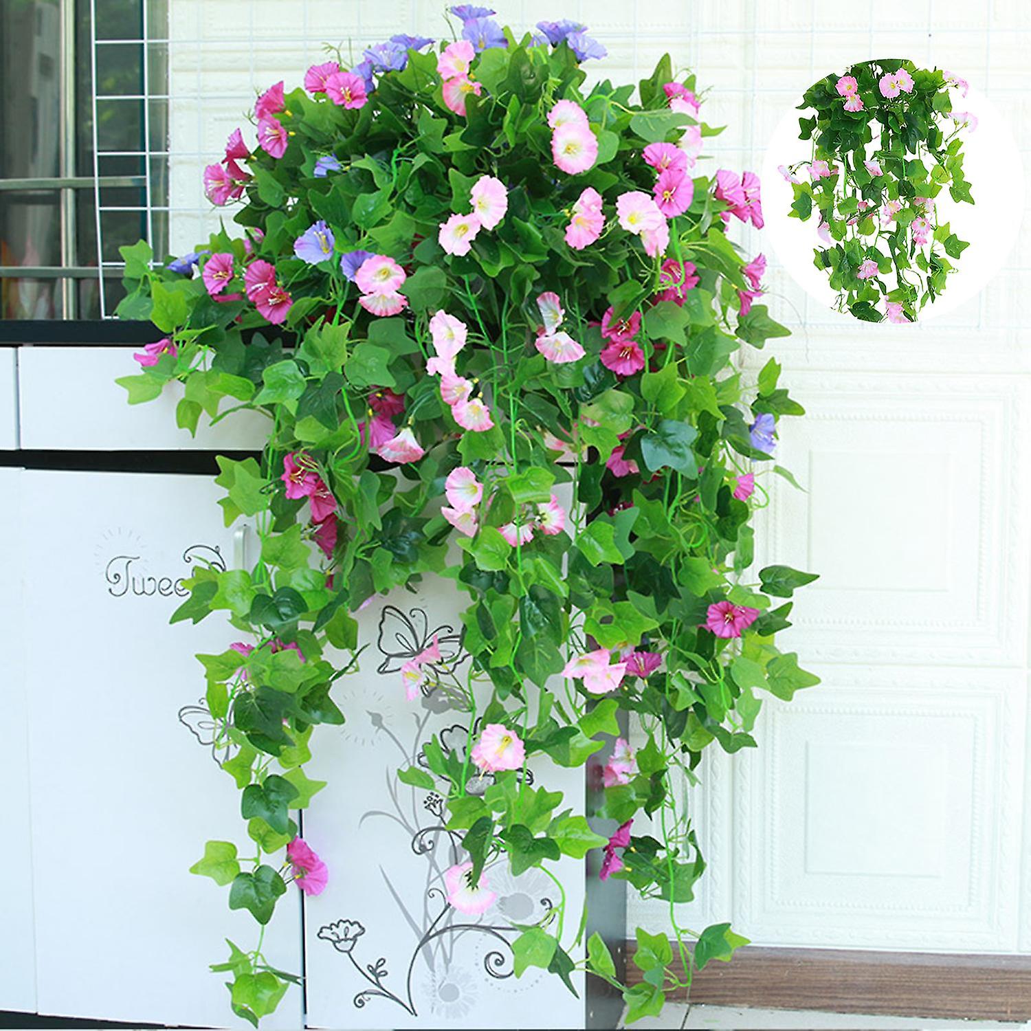 Fake Plant Flower Realistic Vivid Waterproof Hanging Artificial Silk Morning Glory Imitation Flower