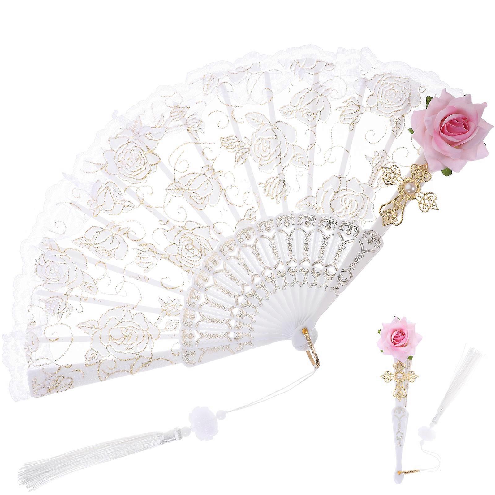 Lace Flower Folding Fan Vintage Hand Fan Handheld Fan for Tea Party Dancing Cosplay